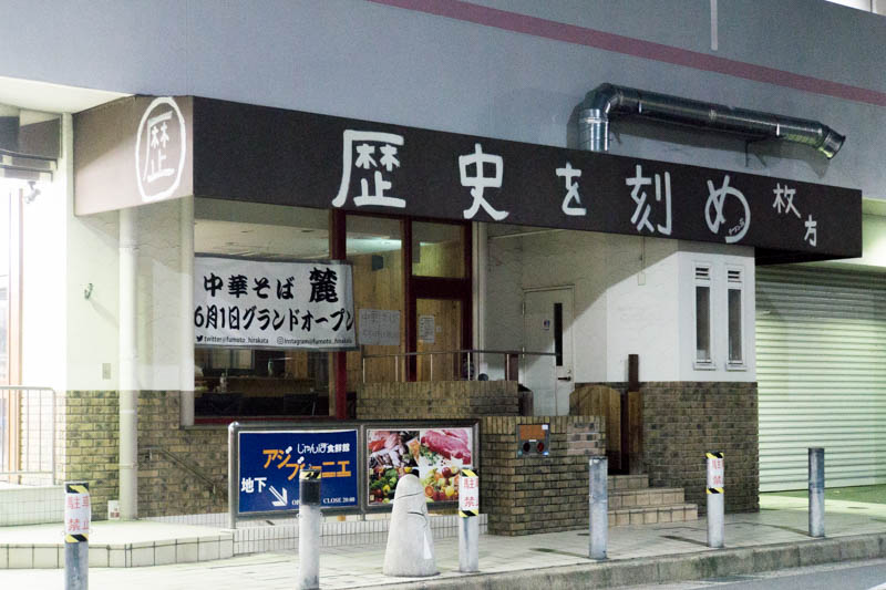 テントからわかるとおり、この場所には以前ラーメン店「歴史を刻め 枚方」がありました。