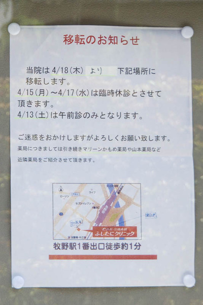 牧野駅ちかくにある「ふしたにクリニック」が移転しています。