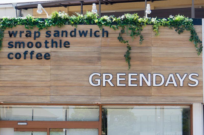看板には「wrap sandwich」「smoothie」「coffee」という文字。