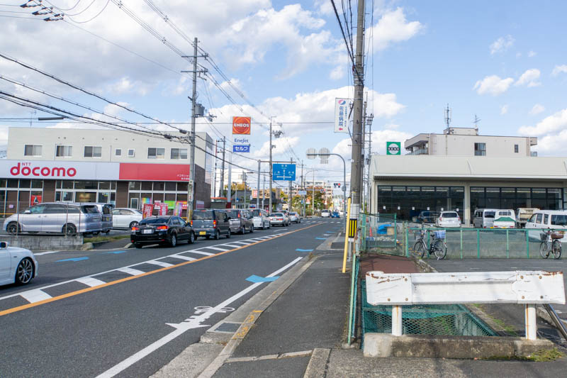 こっちに行くとすぐ、とうかえでの道との交差点「西招提町」が。