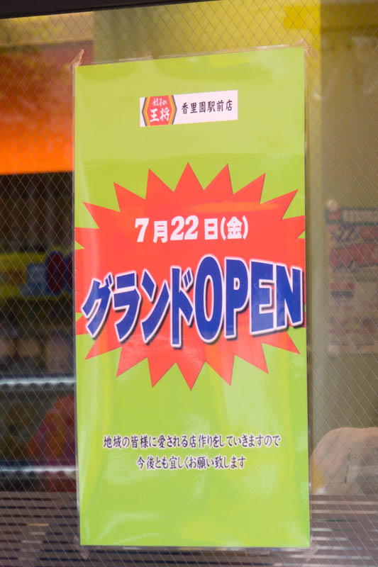 香里園に作っていた「餃子の王将 香里園駅前店」がオープンしています。