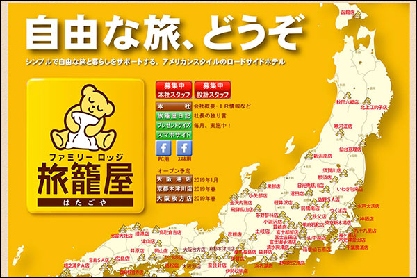 ファミリーロッジ旅籠屋はアメリカンスタイルのロードサイドホテルで、4名1室1万円という、1人あたり2500円で宿泊できる素泊まりにもってこいの宿。