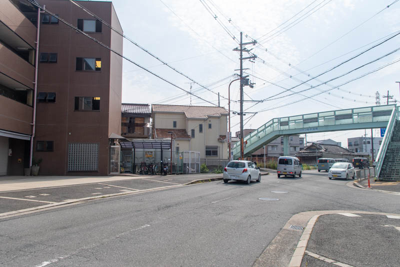 反対方向へ行くと歩道橋があり、逢合橋がかかる天の川、イズミヤ方面。