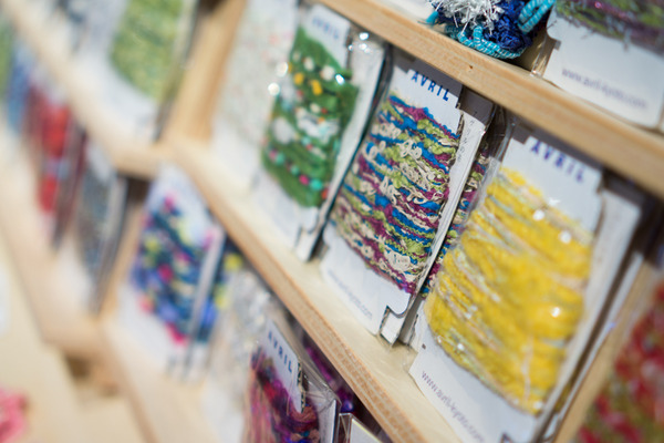 色とりどりの糸を10g単位で量り売りしているので、手編みや手織りだけでなくラッピングやアクセサリー、インテリアなどアイデア次第で様々なものに使っていただけます。
