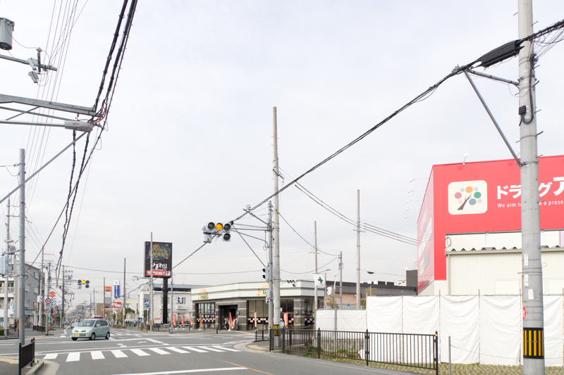 反対方向に行くとガストなどがあり、1号線の出屋敷の交差点付近に出ます。