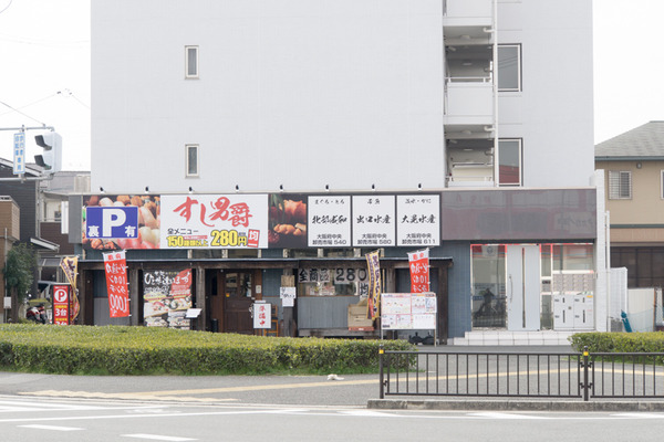 交差点挟んで斜め向かいには昨年12月くらいにリニューアルした「すし男爵」があります。