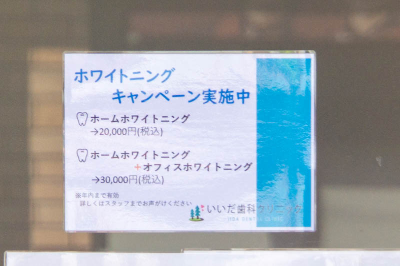 現在ホワイトニングキャンペーン実施中とのこと。(年内まで有効)