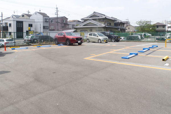 下からフラップ板があがってくるフラップ式のコインパーキングで、駐車可能台数は6台。