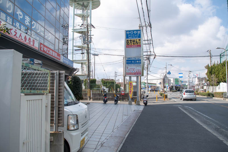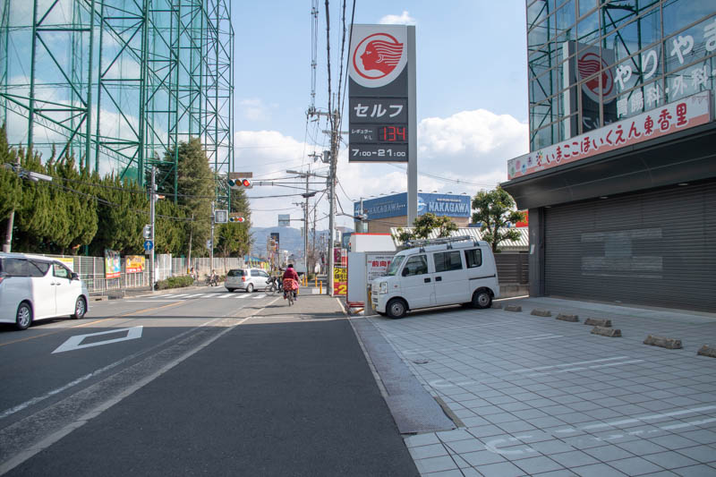 こっちに行くと、最近リニューアルオープンした出光があり、TSUTAYA東香里店、東香里病院などの前を通って高田方面へ。