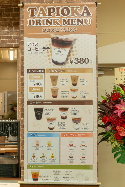 今、流行りのタピオカドリンクも飲めるようでした。ミルクティーだけではなくソーダやフルーツラテといったものでも注文できるとのこと。