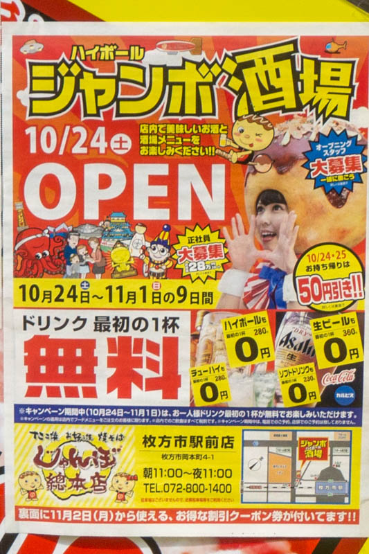 ビオルネ前に作っていた「ジャンボ酒場 枚方市駅前店」がオープンしています。