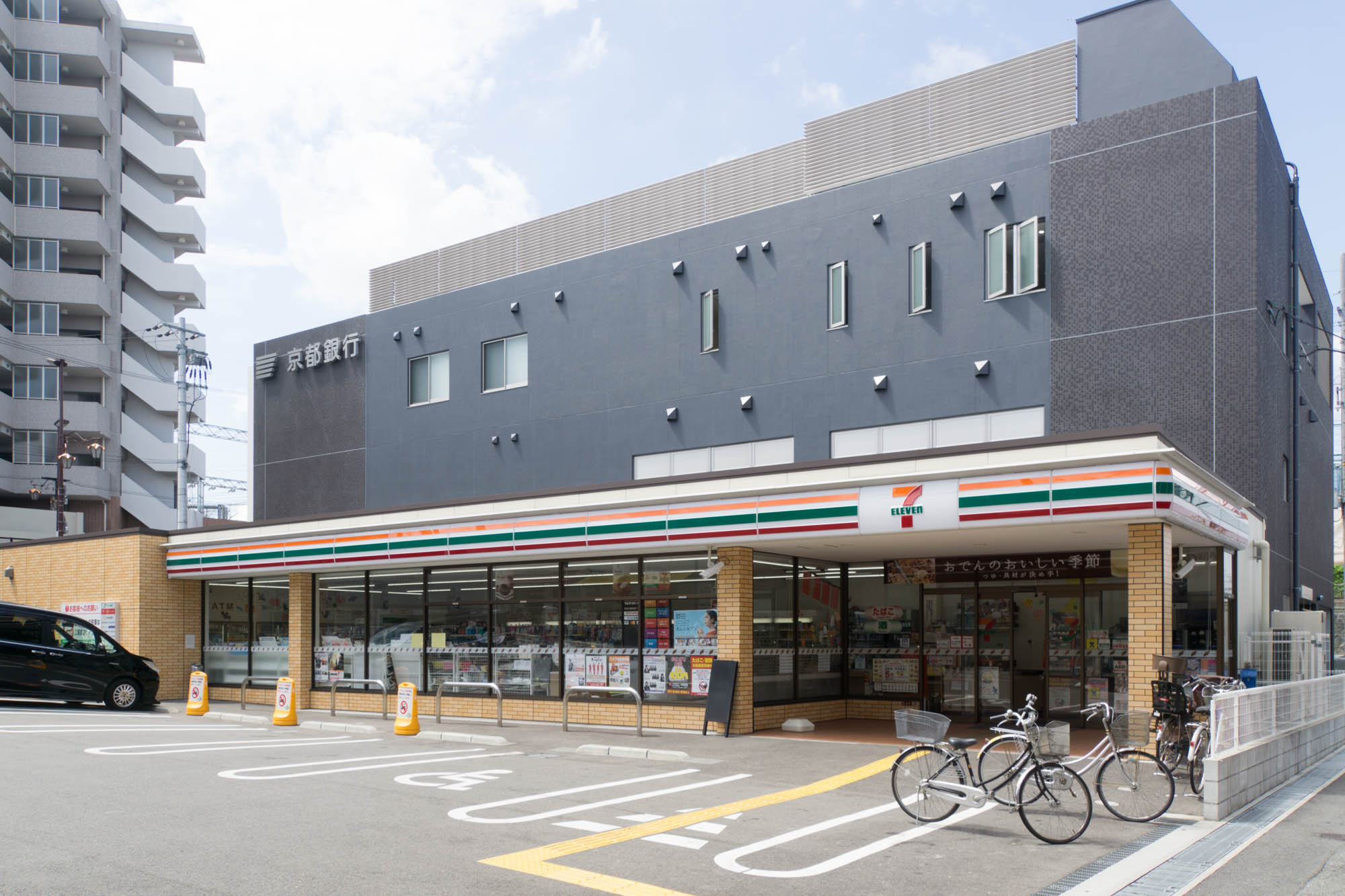 向かいには2014年5月にオープンした「セブンイレブン 枚方牧野阪2丁目店」があります。
