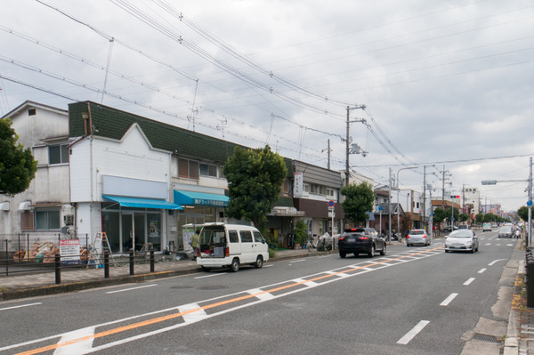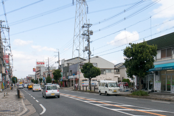 反対方向に行くとダイソーやジョーシンなどがあり、くずはアベニューとの交差点「楠葉中央」が。