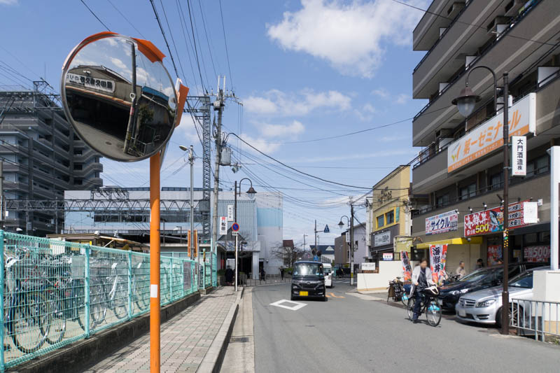 左が交野市駅、右が店舗といった位置関係。交野市駅的にはロータリーがない方です。