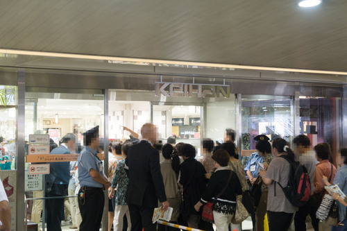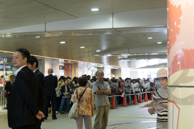 御座候のところをまがり、このあと喫茶店近くまで行列ができていました。