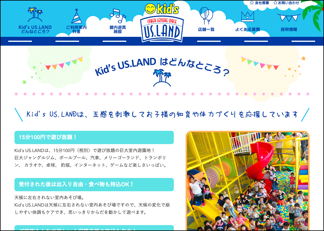 Kid’s US.LANDは15分100円で遊び放題な遊具施設で、ビオルネにできるのにも同じ遊具ができるかはわからないのですが、施設内には巨大ジャングルジム、トランポリン、サイバーホイールなどがあるようです。(→館内遊具・施設)