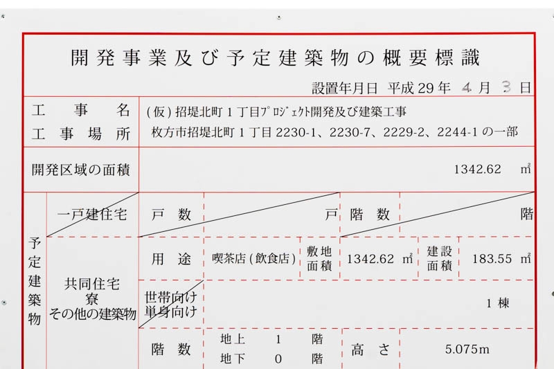 現状では情報がこれだけで、工事予定期間も未定となっていたのでいつごろできるのかはまったくわかりませんが、工事名がプロジェクトだったり開発者が会社になっていたことから、個人経営の喫茶店というよりは法人運営の喫茶店である可能性が高そうですね。
