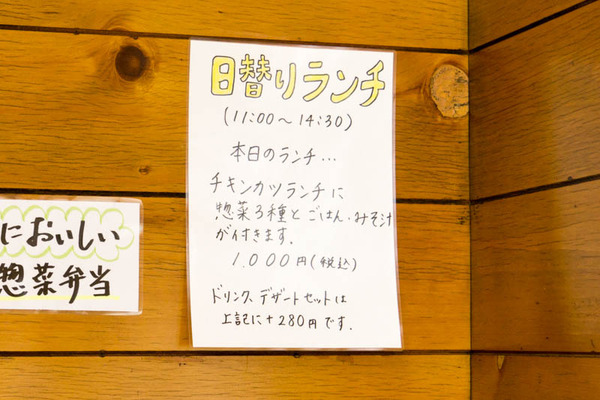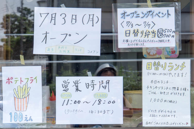 【追記】オープンした時からメニューやお店の営業時間に変更があり、現在は日替わりランチ・弁当をメインで提供していて、営業時間は11時〜15時までになっているとのこと。オープン時に提供していた惣菜メニューの提供は終了したようです。【追記終了】