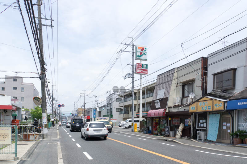 反対方向にはセブンイレブンがそばにあり、その向かいには山之上郵便局。進んでいくと山之上→田宮→大垣内町、そして枚方市役所や枚方市駅などの方へ。