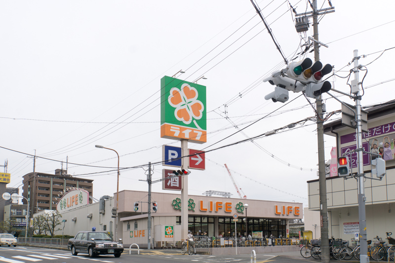 こっちにいくと前述のライフがあり、そこで右に曲がると牧野駅。曲がらずに進んでいくと松園ボウルなどがあります。