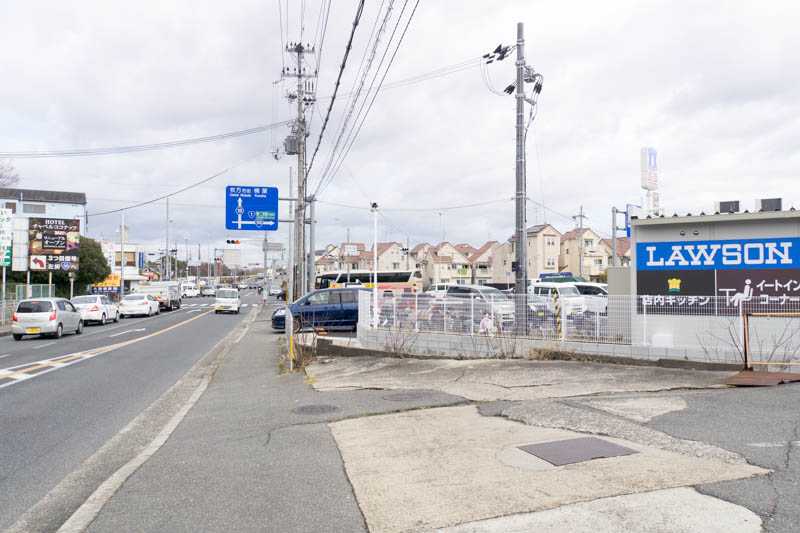 というか、今日オープンしたコンビニが2つとも三角州的なところにあるなんて面白い偶然ですねー。ちなみに168号線は中央にフェンスがあるので、交野・奈良方面へ向かう側からはローソンに入れないのでご注意ください。その場合は府道18号線側から入ることになります。