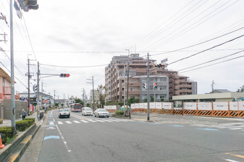 向かいには第2ローズ幼稚園があり、こっちにいくとスシローや来々亭などの前を通って、とうかえでの道との交差点「西招提町」にたどり着きます。
