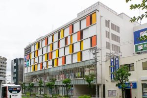 反対方向すぐ横には郵便局、バス停の四辻があり、真っ直ぐ行くとユニクロなどが。