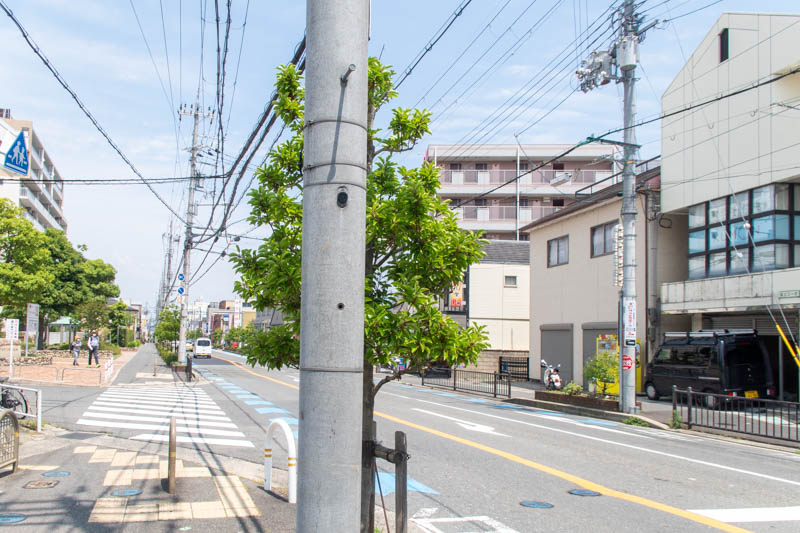 反対方向には去年閉店したハッピースの建物や関西外大中宮キャンパスなどがあります。