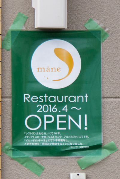 山手幹線ぞい花住坂に「mane」というレストランができるようです。