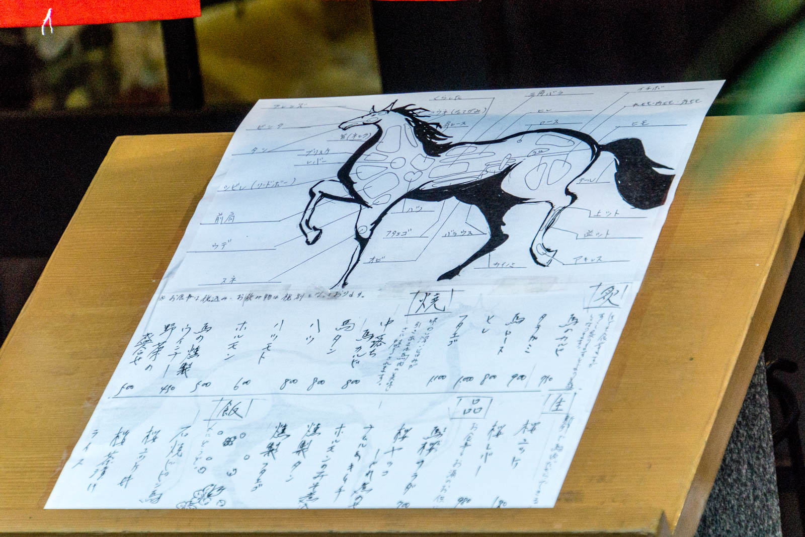 メニューを見てみると、馬タン(800円)や馬の燻製ウインナー(450円)など、いったいどんな食感でどんな味なのか全く想像がつかないですね。