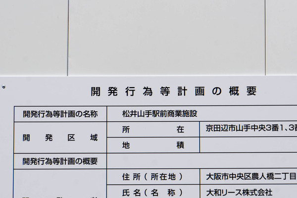 名称は「松井山手駅前商業施設」とあるので、商業施設ができるのは間違いありません。