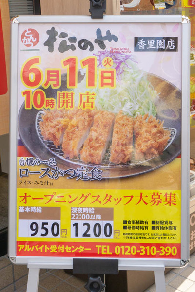 香里園に作っていたとんかつチェーン「松のや 香里園店」がオープンしています。