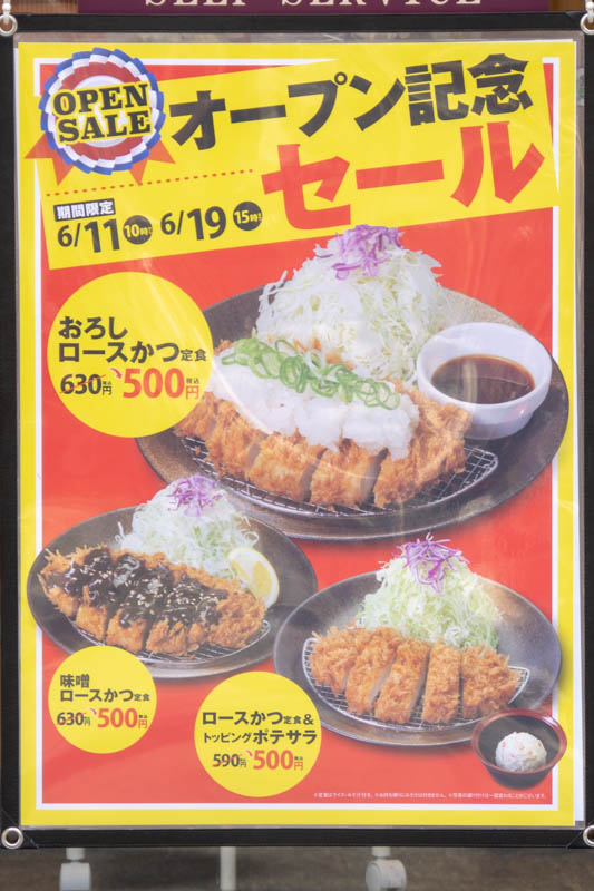 6月11日〜19日の間はオープン記念セールで上記のロースカツ定食が500円になるようです。