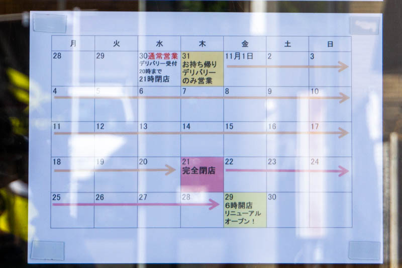 現在も営業していますが、お持ち帰り、デリバリーのみの営業のようで、21日完全閉店とのこと。