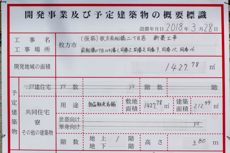 府道18号線沿い南船橋に物品販売店舗ができるようです。