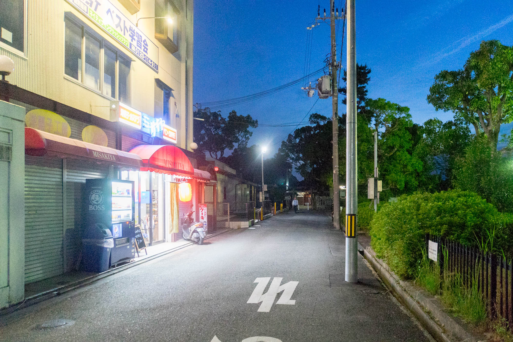反対方向にいくと府道17号線に出まして、左に行くと牧野駅方面、まっすぐいくと関西スーパーやコノミヤなどの方へ。