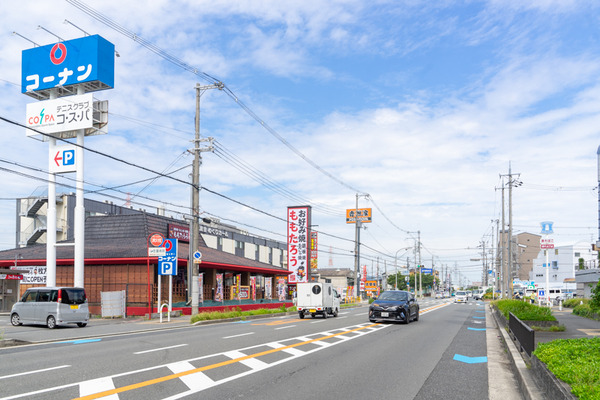 反対方向には吉野家やローソンがありまして、その先には丸亀製麺などが。