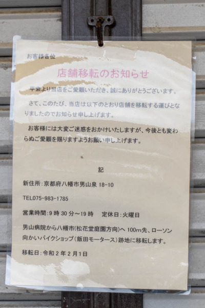 お店の前には店舗移転のお知らせと書かれた紙が。2月1日に移転したようです。