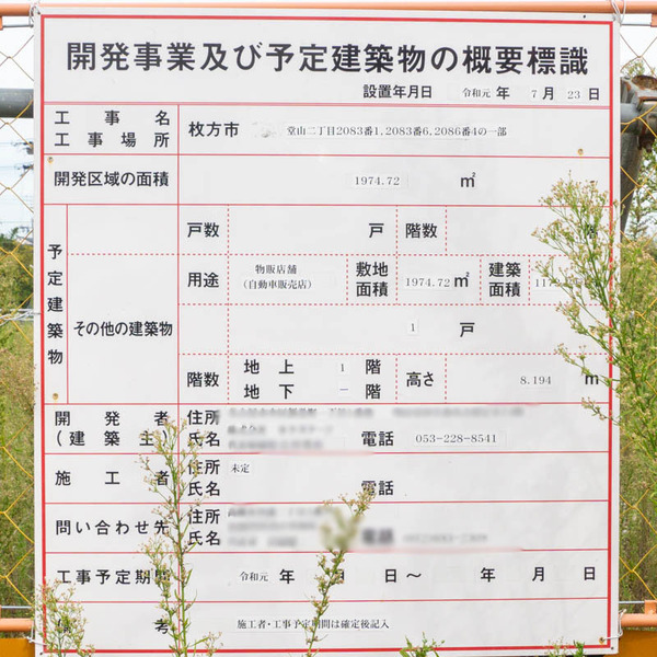 国道1号線ぞい池之宮の「ロイヤルホスト」の跡地にできるのは自動車販売店のようです。