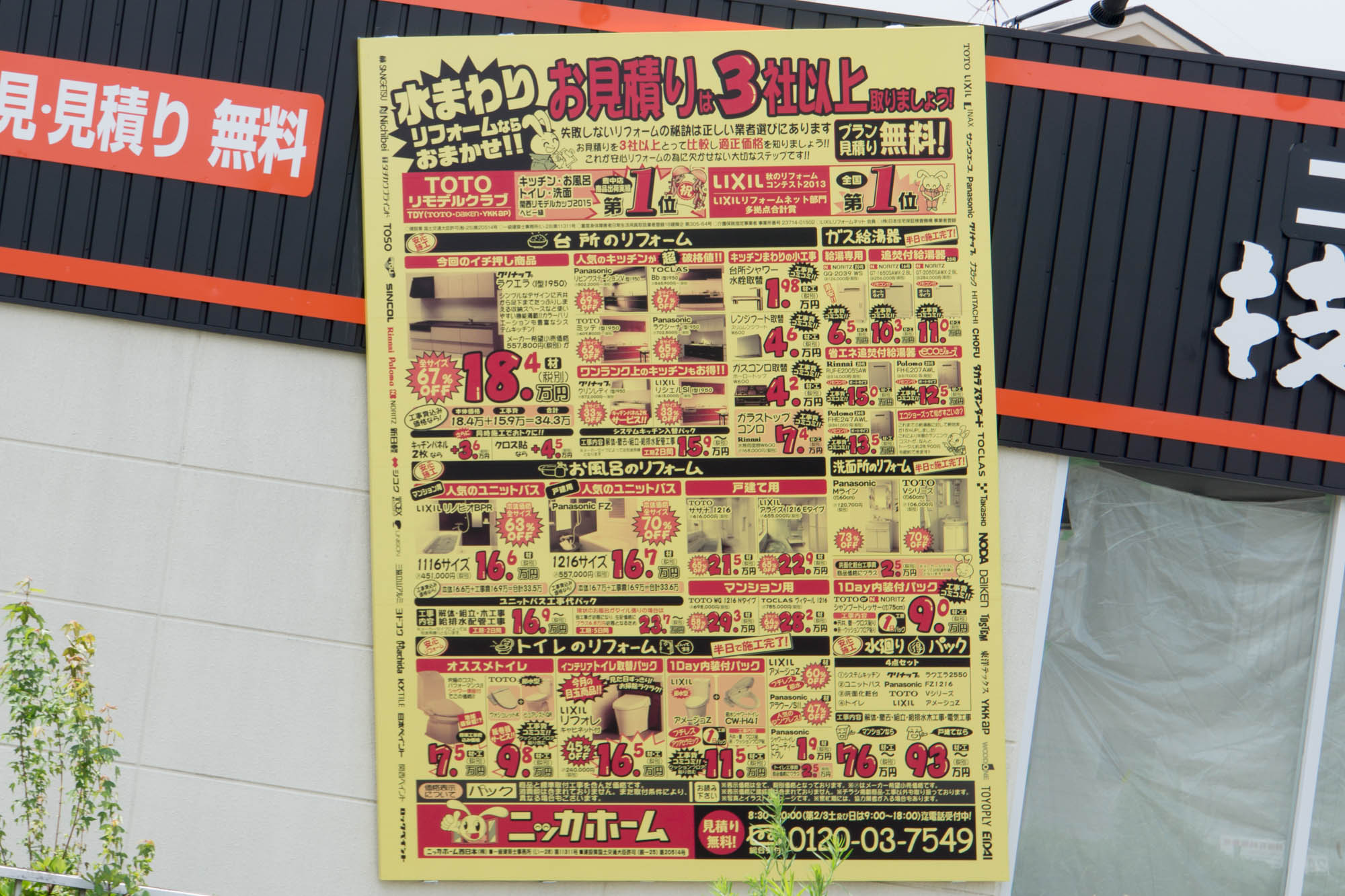 ニッカホームといえば名古屋を中心に展開するリフォームのお店。枚方市内では以前渚西にショールームがありました。(→公式サイト)