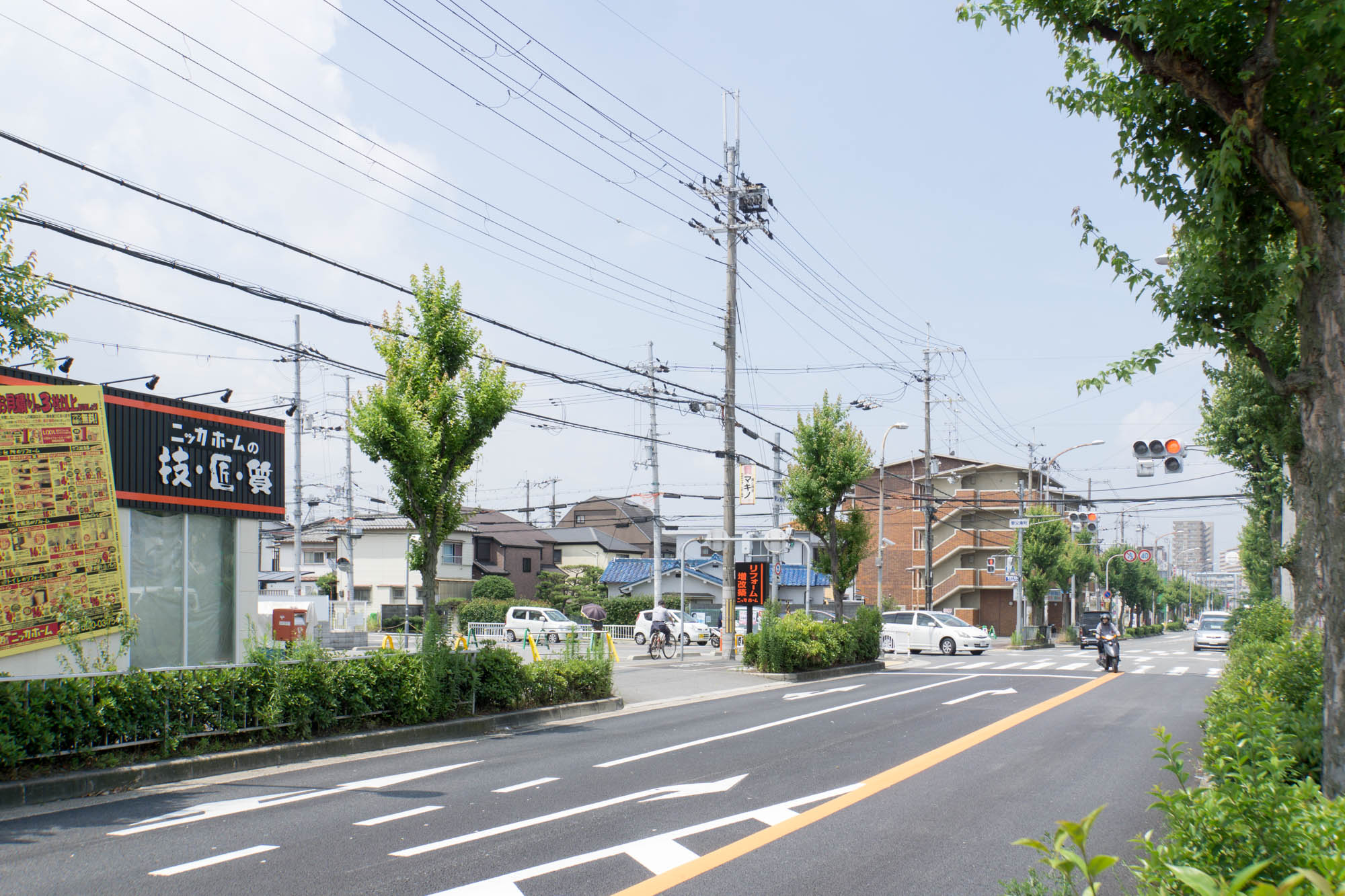 反対方向に行くと京阪電車の下をくぐって旧1号線との交差点「上島町」に。