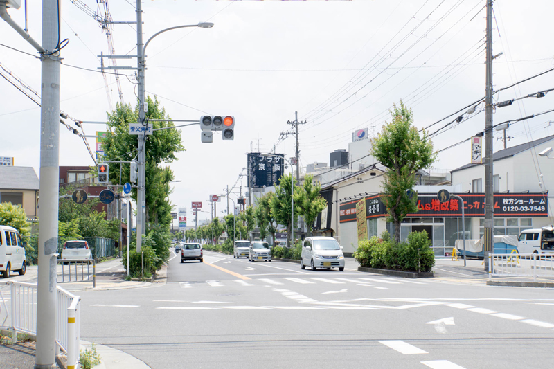 こっちに行くとガストやサンディ、フレンドマートやTSUTAYA、牧野高校などがあります。