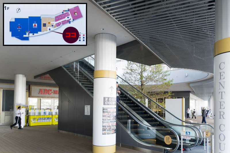 エスカレーターに乗ってセンターコート2階へとあがっていきます。