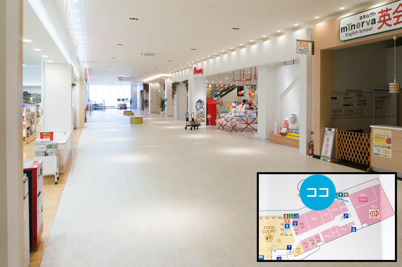 ダイソー前からペップピッツやアカチャンホンポ側を撮影。このそばに英会話のミネルヴァもあります。