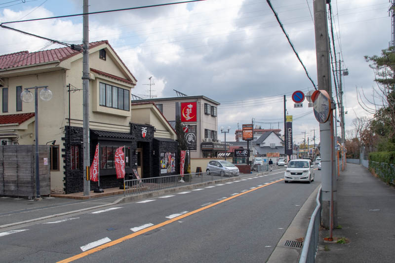 こっちにいくと山田池公園沿いに坂道を下り、1号線の交差点「出屋敷」へ。