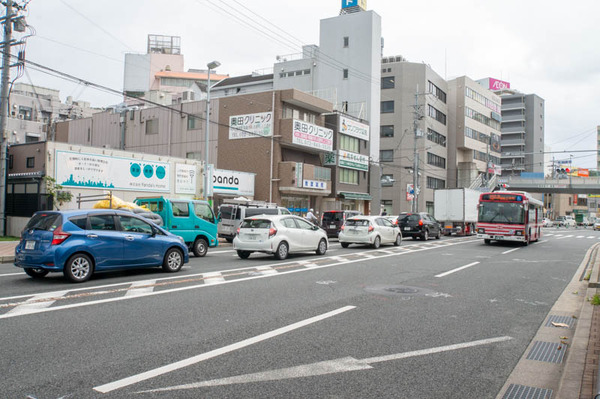 反対方向へ行くとすぐ交差点があり、左折すると枚方市駅北口ロータリーに。交差点右側には関西医大などがあります。