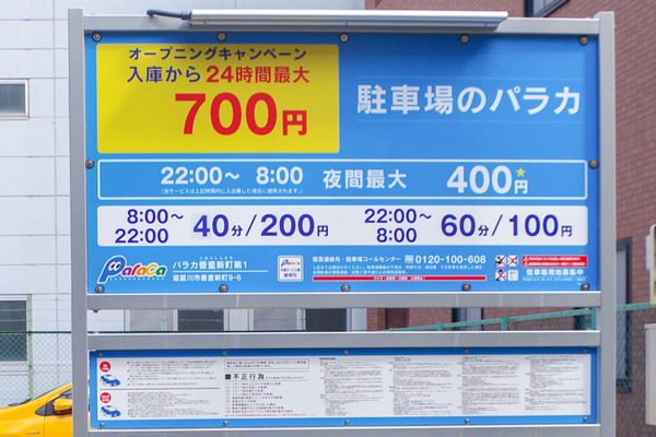 夜間(22:00~8:00)は最大400円で、24時間の最大料金は700円。(オープンニングキャンペーンのためとのこと)