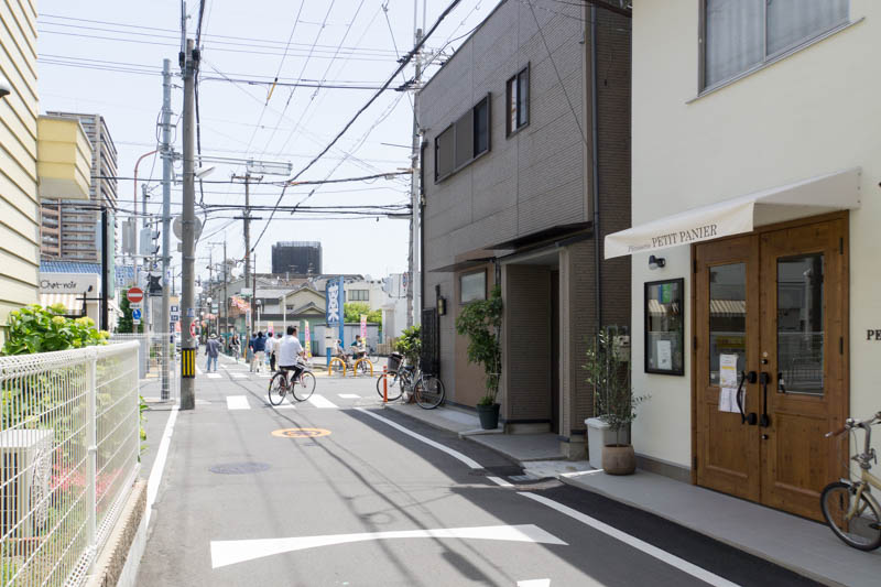 反対方向にはすぐ交差点があり、そのそばには同じく洋菓子店のシャ・ノワール、ドラッグストアのマルゼンがあります。まっすぐ進んでいくと香里園駅方面へ。