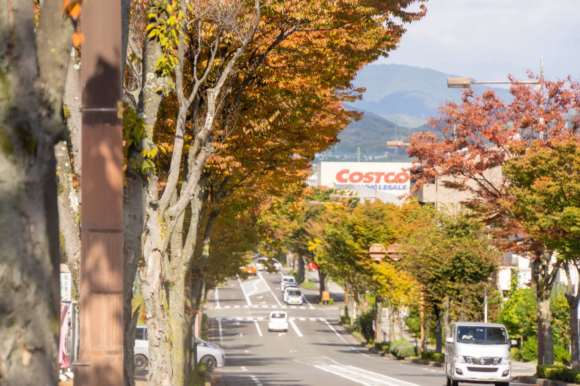 こっちに行くとソフィアモール、コストコなどがあります。向かいには丸亀製麺が。