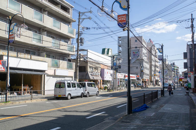 反対方向へ行くとイズミヤの前を通りまして、眼鏡市場が近くにある大きな交差点へ。交差点を左に曲がると枚方市駅方面です。